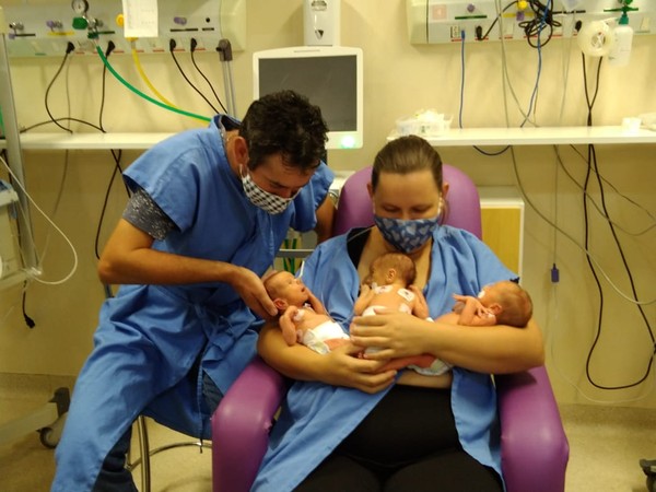 "Por se tratar de uma gestação trigemelar, é bem menos frequente porque é mais comum de gêmeos, então precisa de uma dupla divisão do embrião ou mesmo que um embrião se divida e tenha mais uma gestação, para então formar três embriões", detalhou a obstetra Andréia Sayaka.