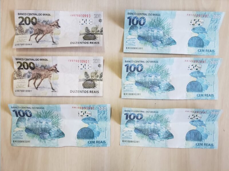 Dentro do envelope recebido pelo suspeito foram encontradas cédulas falsas de R$ 100,00 e R$ 200,00, totalizando R$ 800,00.