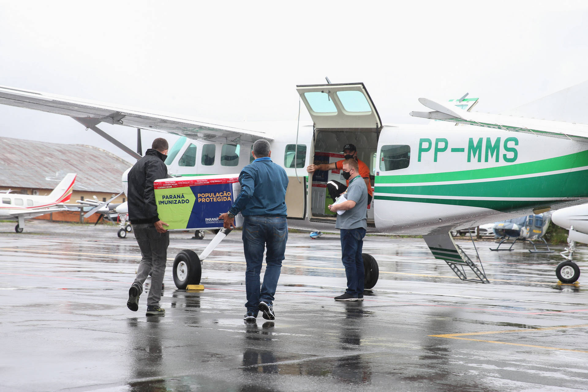 Três aeronaves da frota do Governo do Estado saíram na manhã desta terça-feira (19) com aproximadamente 80 mil doses para distribuição das vacinas no Interior do Paraná. Serão em torno de 15 viagens entre Curitiba e os municípios-sede de algumas regionais de Saúde. As vacinas Coronavac, produzidas pelo laboratório chinês Sinovac em parceria com o Instituto Butantan, serão retiradas nos aeroportos pelas Regionais de Saúde e encaminhadas, logo em seguida, para as prefeituras.