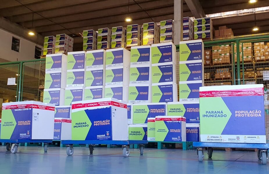 A Secretaria Estadual de Saúde do Paraná (Sesa) recebeu do Ministério da Saúde, na manhã deste domingo (07), mais 147.200 doses da vacina Coronavac/Instituto Butantan, contra o novo coronavírus. O imunizante chegou por volta das 8h, em Curitiba, e foi levado diretamente ao Centro de Medicamentos do Paraná (Cemepar). Por volta das 14h, as vacinas já começaram a ser distribuídas para as 22 regionais de saúde do Estado.
