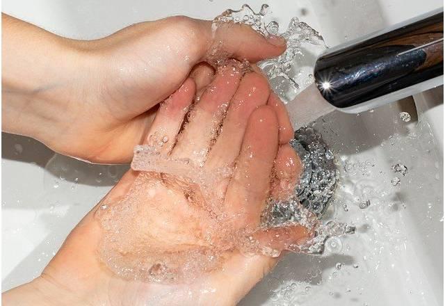 A lavagem das mãos impede o vírus de penetrar no corpo através da pele e ainda o "dissolve". A água, leva embora os fragmentos.
