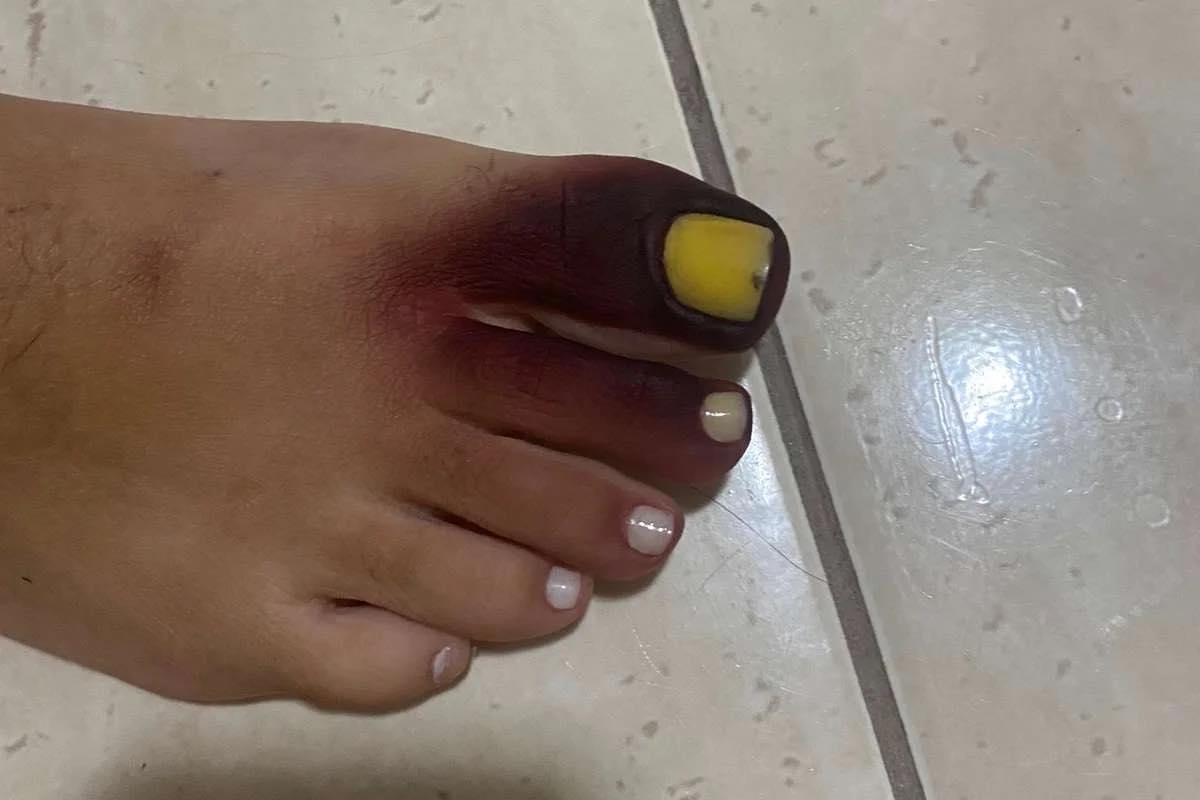 Mulher fica com dedos do pé roxos após ter piolho-de-cobra preso no t...