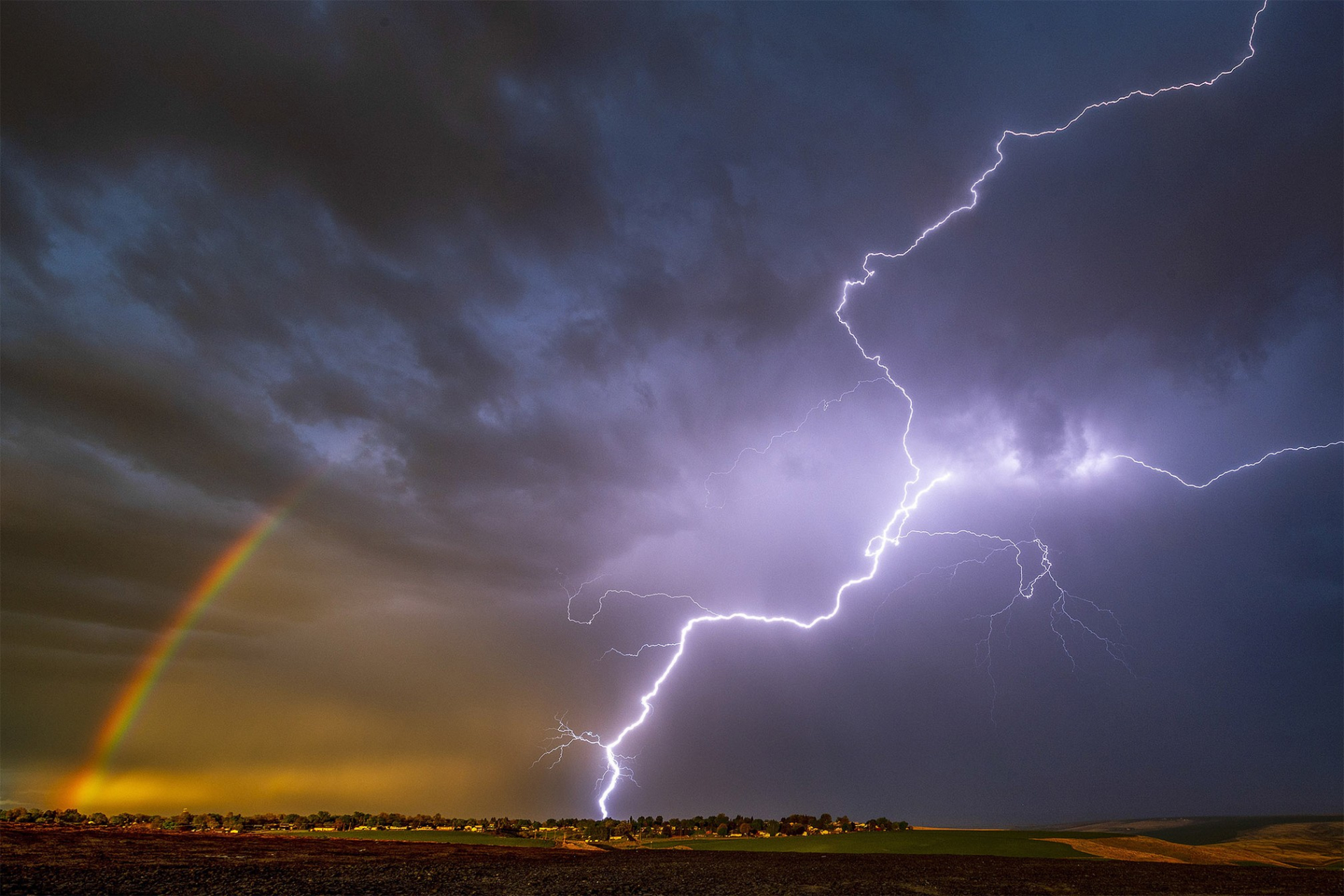 Fotógrafo captura relâmpago e arco-íris na mesma foto nos EUA